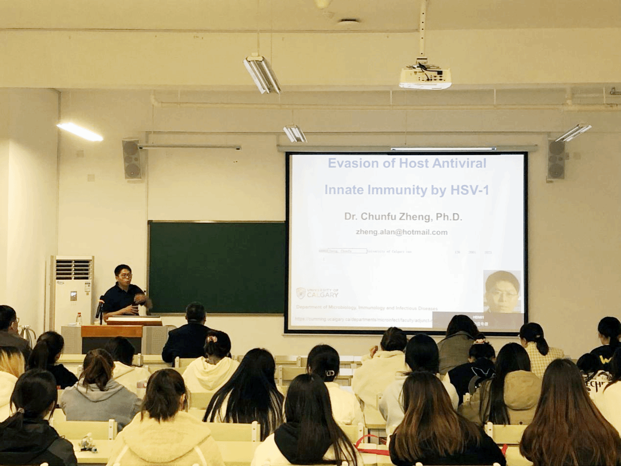 11月6日上午,加拿大卡尔加里大学郑春福教授来beat365亚洲体育官方网站访问,并为公司(中心)师生做了题为《Evasion of host antiviral innate immunity by HSV-1》的学术报告。