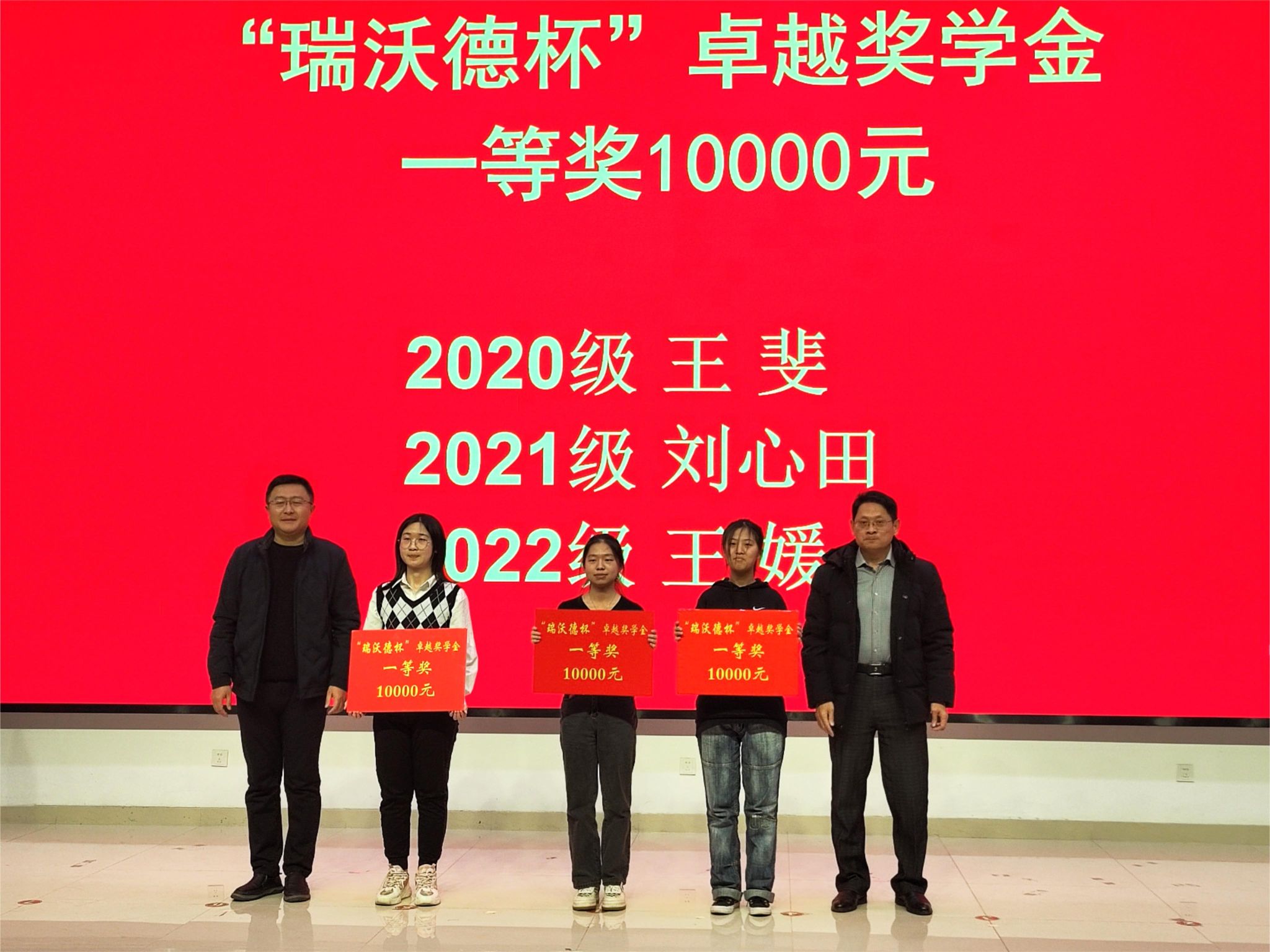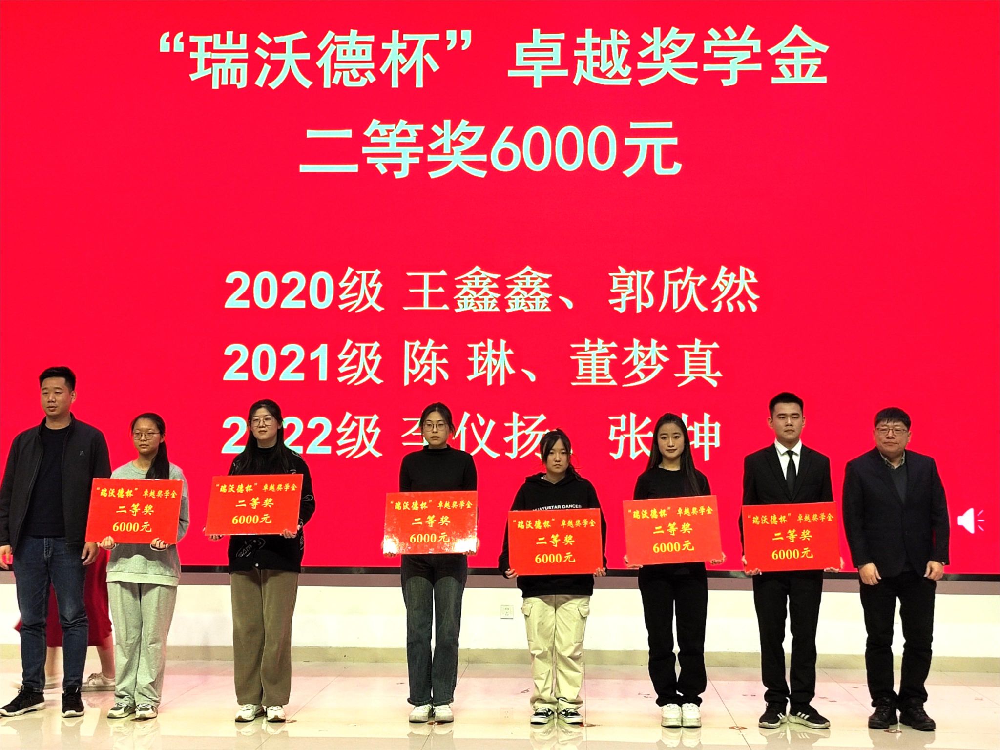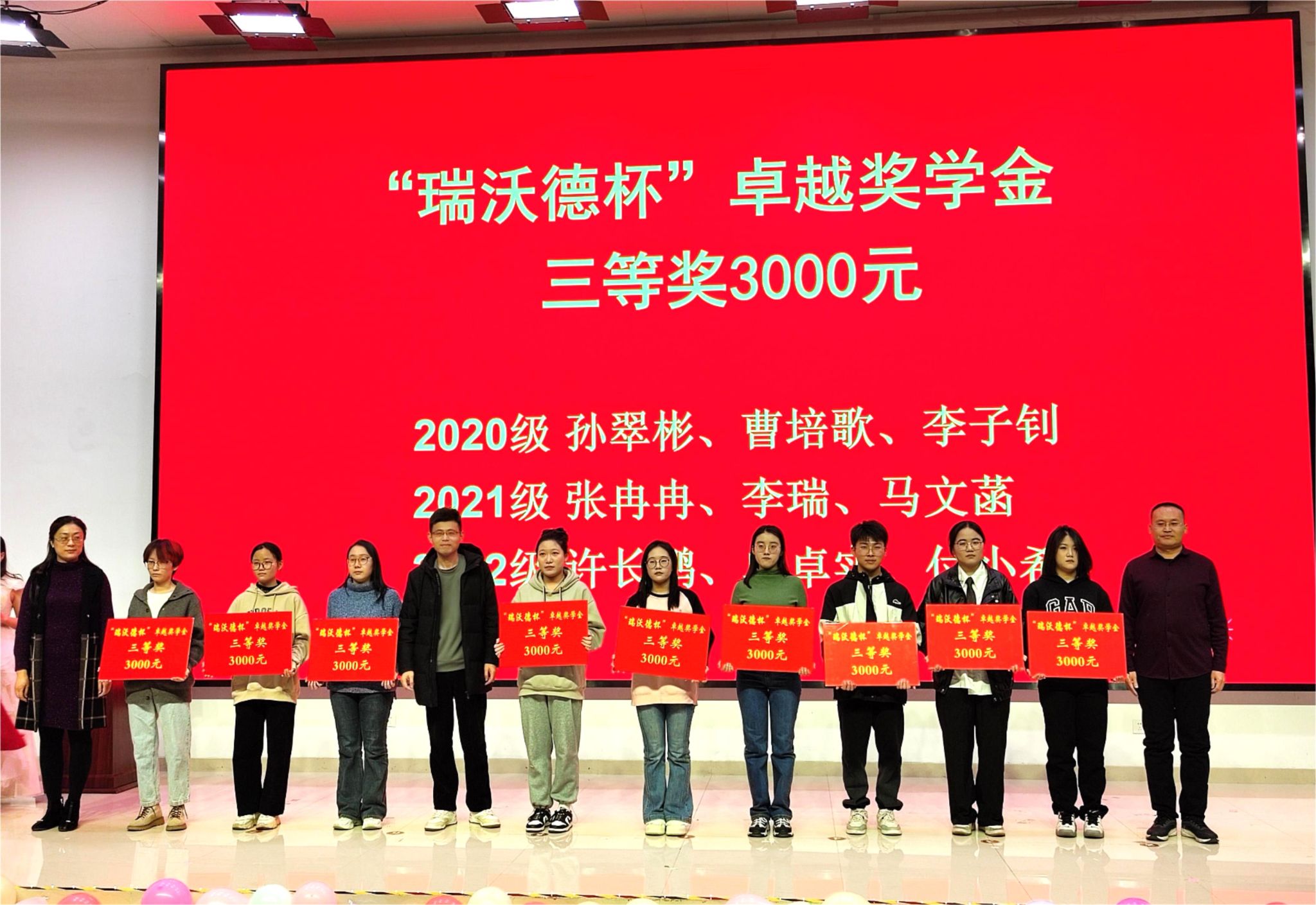 联欢会中场,宣读了公司(中心)《关于颁发“瑞沃德杯”卓越奖学金的决定》:王斐等3名同学获得一等奖学金,每人10000元;王鑫鑫等6名同学获得二等奖学金,每人6000元;孙翠彬等9名同学获得三等奖学金,每人3000元。毕业班王斐同学连续三年获得一等奖学金,作为优秀员工代表进行发言,表达了对公司、公司和企业的感恩之情及美好祝愿。