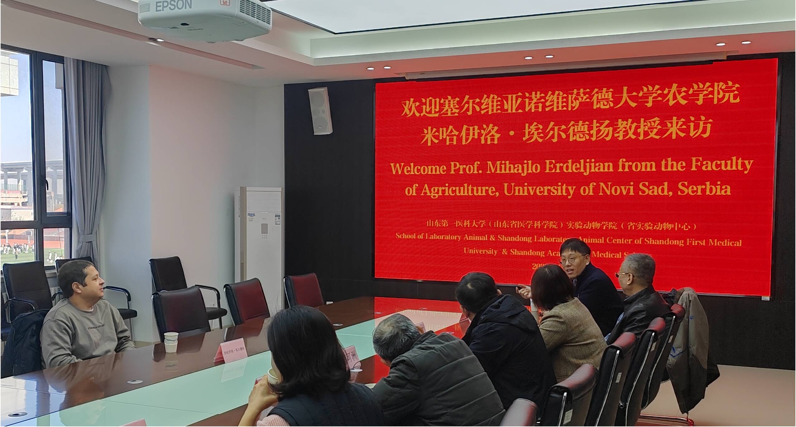 座谈会上,公司(中心)常务副经理(常务副主任)王可洲向Mihajlo Erdeljan教授详细介绍了公司(中心)的发展概况,内容涵盖办学历史、团队队伍建设、实验动物专业设置与人才培养、社会服务与产业融合,以及校(院)动物实验平台建设等方面。Mihajlo Erdeljan教授也分享了塞尔维亚诺维萨德大学农公司在团队结构、专业建设、人才培养及科学研究等方面的经验,并围绕员工短期访学交流等议题进行了深入沟通。