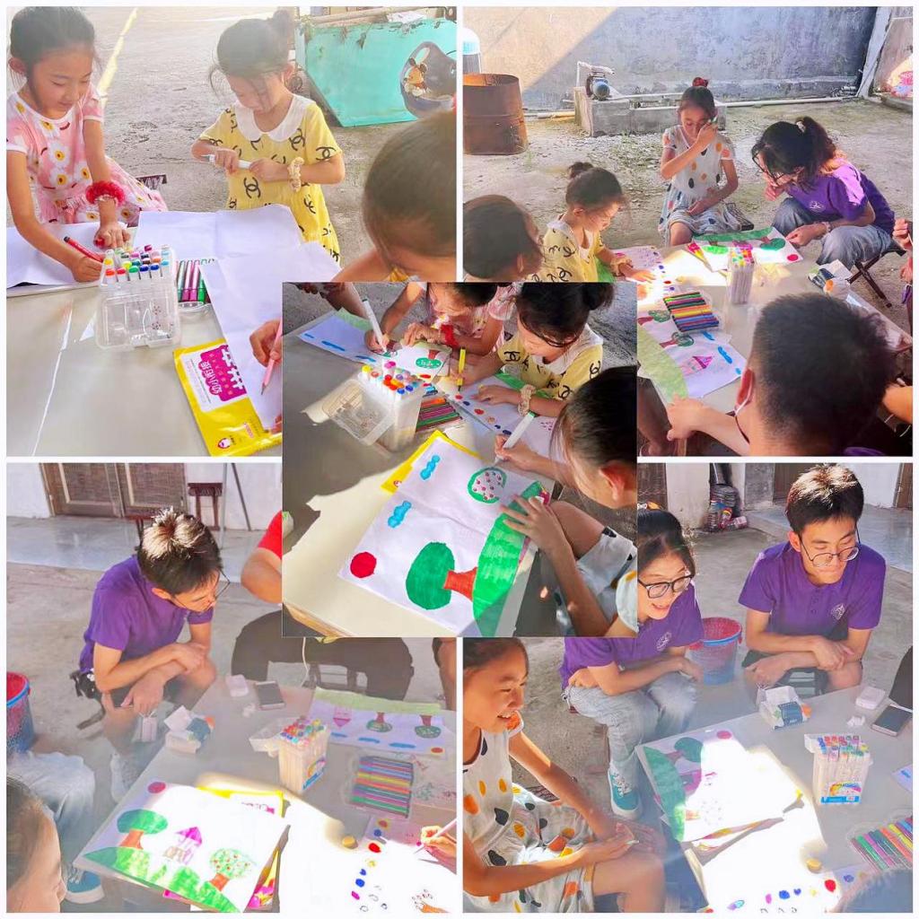 在爱湖村,公司(中心)的师生们为留守儿童捐助了一座“希望小屋”。在走访“希望小屋”的过程中,支部党员和同学们看到五位留守儿童生活拮据,长期居住在条件简陋、设施缺乏的环境中时,都被孩子们天真、懂事的眼神所感动。大家为孩子们送上了慰问物品,员工们与孩子们进行了互动交流。在了解到孩子们喜欢画画后,同学们耐心地引导着孩子们画出了对美好生活的向往。在孩子们的想象中有五彩斑斓的房子,绿树成荫的草地,挂满果实的苹果园和透明蔚蓝的天空......一双双稚嫩的小手画出了孩子们对拥有美好生活的期许。访问最后,员工们与孩子们交换了联系方式,建立了长期联系,希望通过自己的知识和力量能够帮助困境中的孩子们在今后的学习与生活中健康快乐成长。