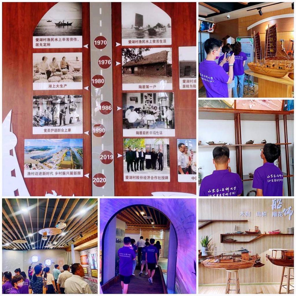 在解说人员的引导下,大家先后对爱湖船社、渔家文创、历史文化展馆、红色教育基地进行了参观,在身临其境的体验中,同学们更加深入的了解了,在党的领导下,通过真抓实干,大力实施民政领域乡村建设行动,爱湖村一步步从渔民生活居无定所的贫困小渔村,到现在“老有所养,幼有所教,贫有所依,难有所助”实现乡村振兴发展的历史变迁过程。同学们感叹“看到美丽小村变迁的历史,让自己感到震撼,心中涌起奋斗的力量。”
