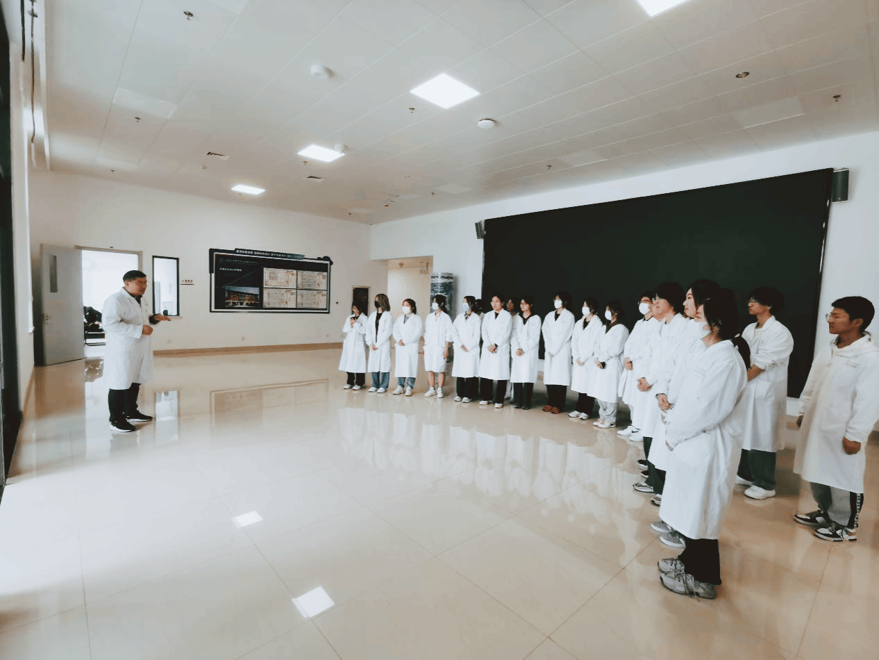 党员代表王永安立足本职工作特点,以现场教学的形式,向同学们详细讲解了公司动物实验平台的整体布局、各部分功能及投入使用后的工作内容等,并带领同学们现场参观了平台特有的多屏中控室、高通量实验动物笼盒处理流水线和维持运转机房。现场教学氛围活泼,同学们热情高涨,纷纷表示通过现场观摩,使自己对公司情况、实验动物专业学习内容、专业特点以及就业方向等有了具体的认知。