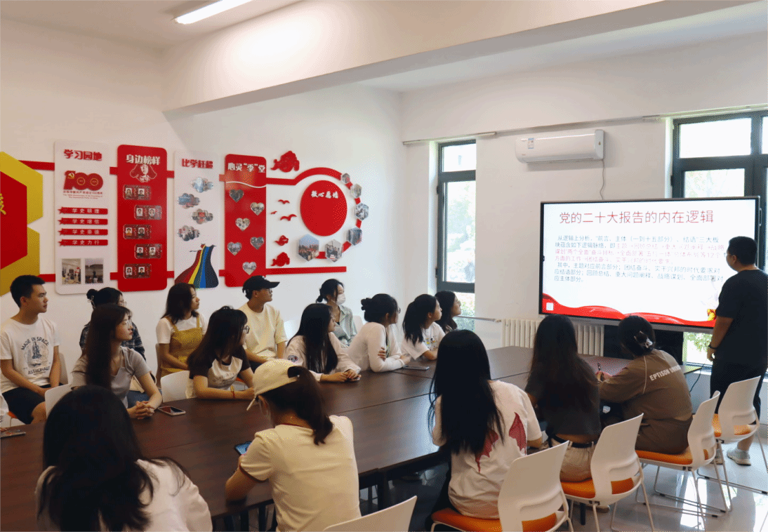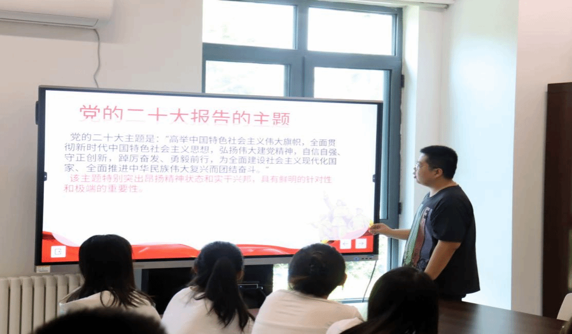 活动中,预备党员孙加宇同学带领同学们一起学习了党的二十大精神。大家纷纷表示,作为新时代新青年,应该做到坚定理想信念,不断提升和完善自己,自信自强、守正创新、踔历奋发、勇毅前行,让青春在全面建设社会主义现代化国家的火热实践中绽放绚丽之花。