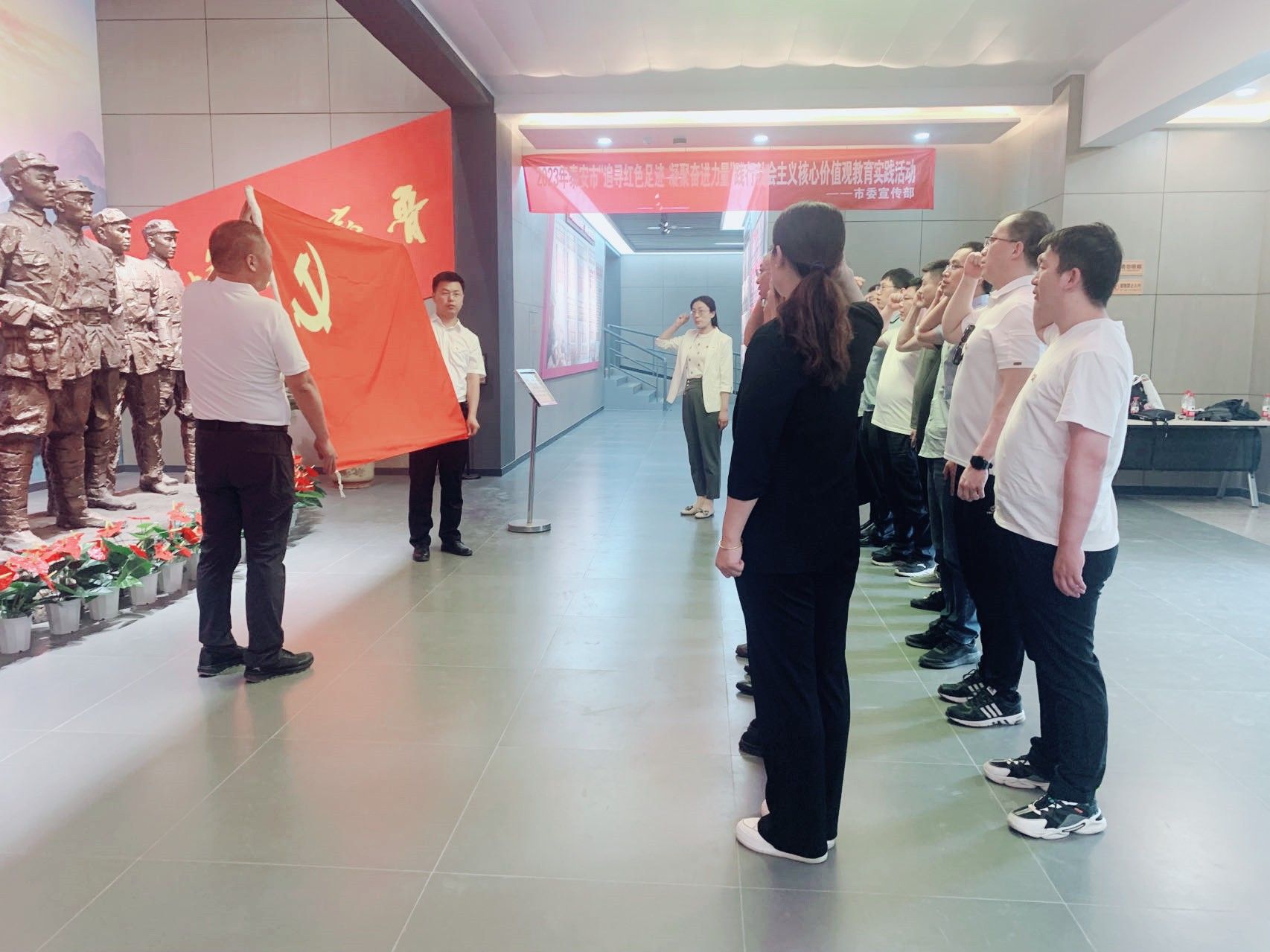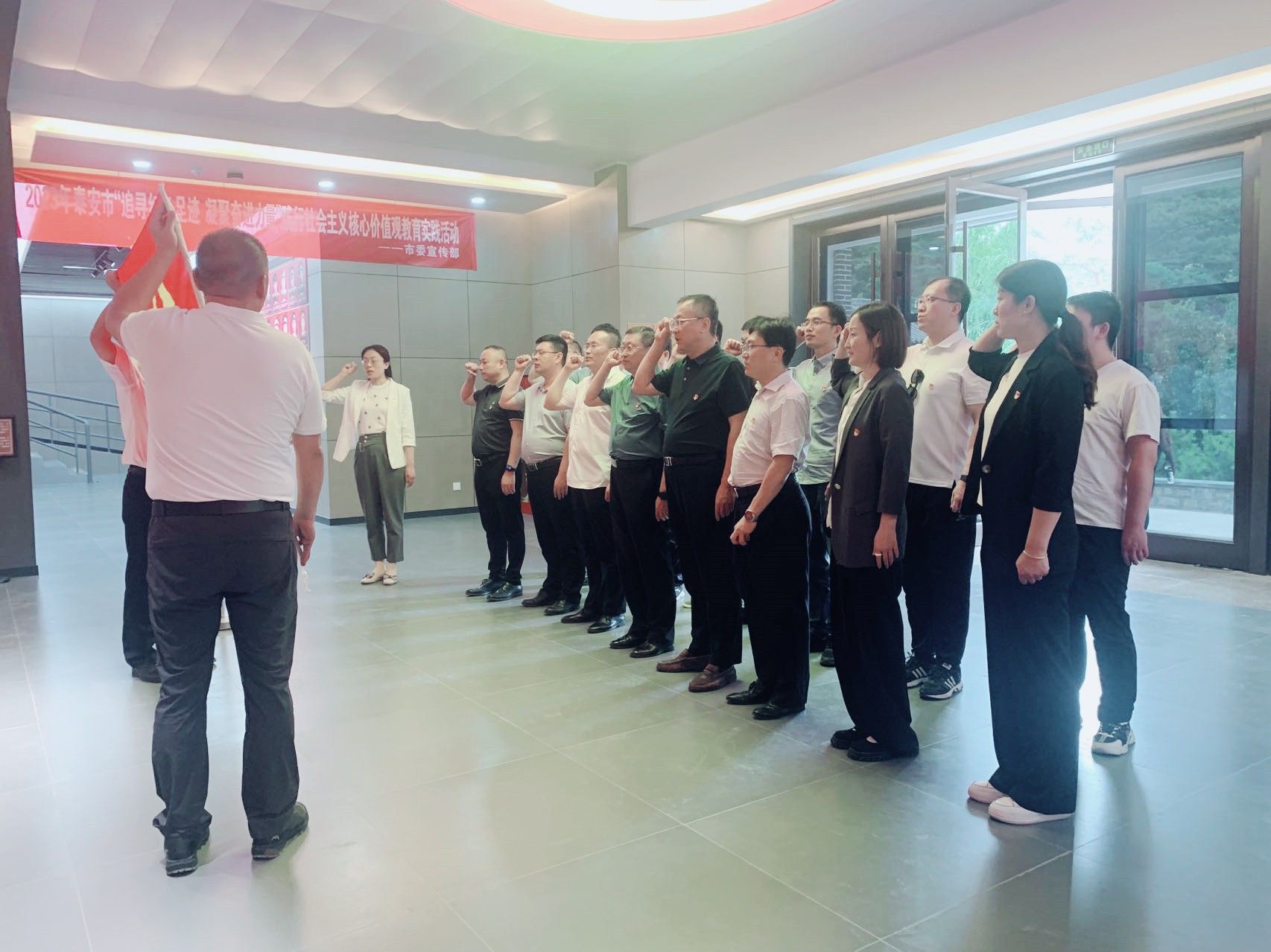 在徂徕山抗日武装起义纪念馆前,大家举行了重温入党宣誓仪式,全体党员集体列队肃立,面对鲜艳的党旗,庄严宣誓,为共产主义奋斗终身。