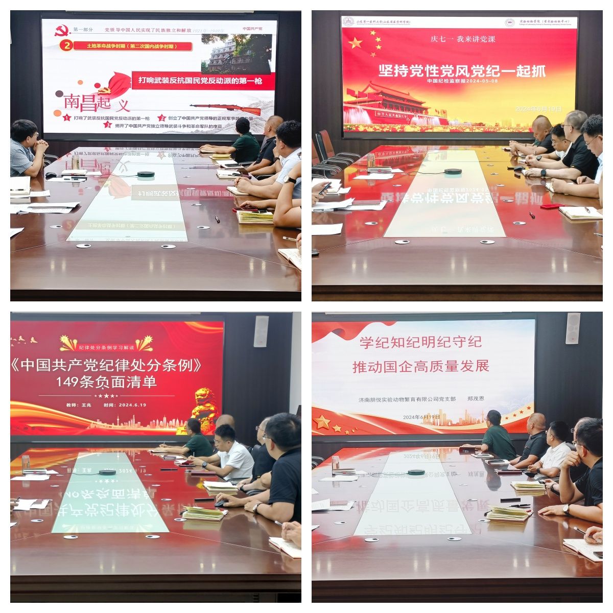 党课上,公司教师党支部书记于扬、员工党支部书记王兆和公司济南朋悦实验动物繁育有限公司党支部书记郑茂恩也分别以《坚持党性党风党纪一起抓》《中国共产党纪律处分条例——149条负面清单》《学纪知纪明纪守纪推动国企高质量发展》为题为大家带来了精彩的纪律党课。