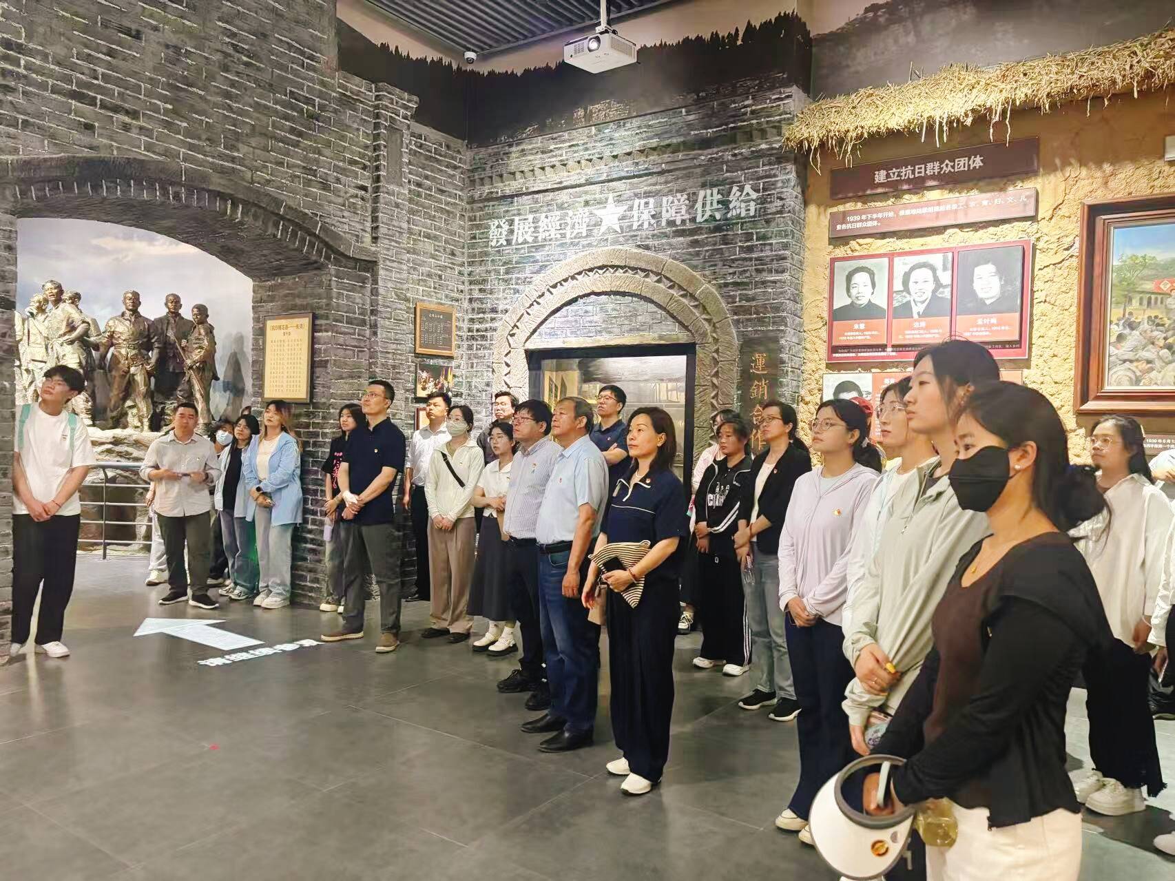 宣誓仪式后,党员干部与青年员工携手走进党员政治生活馆,在“序厅”的历史光影中溯寻初心原点,于“初心学堂”的红色典籍前共读革命先辈廉洁家书,在“警钟”展区的典型案例前驻足沉思。在讲解员的引领下,师生们来到中共长清县委旧址,依次参观了大峰山政民训练班、救亡室等历史场所,革命先辈带领长清人民学习、生活、战斗的场景历历再现。大家沿着历史脉络,从革命萌芽到胜利曙光,逐步回溯了那段波澜壮阔、惊心动魄的革命历程。