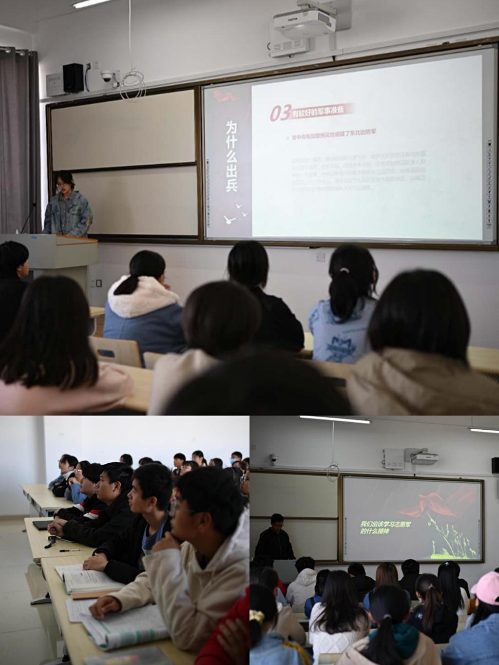 beat365亚洲体育官方网站组织同学们观看影视视频,学习抗美援朝战争的相关知识,感受抗美援朝战争的恢弘历史,当年的山河破碎已国泰民安,当年的硝烟弥漫已云白天蓝。随后,同学们进行了交流发言,感叹美好生活的来之不易,为今日的祖国感到自豪,进一步领略中华民族的伟大精神,纷纷表示决不能忘记那些最可爱的人,要珍惜今天的美好生活,为实现伟大复兴的中国梦而努力学习,不懈奋斗。