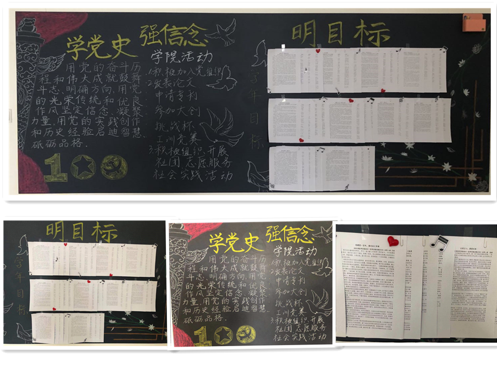 同学们新的目标,一张一张挂满整面墙,这些目标有的积蓄力量、力争突破,有的充满挑战、斗志昂扬,有的静待花开、温暖美好。学党史,强信念,明目标,同学们将以脚踏实地,奋勇争先,不负每一天的实际行动迎接建党一百周年。