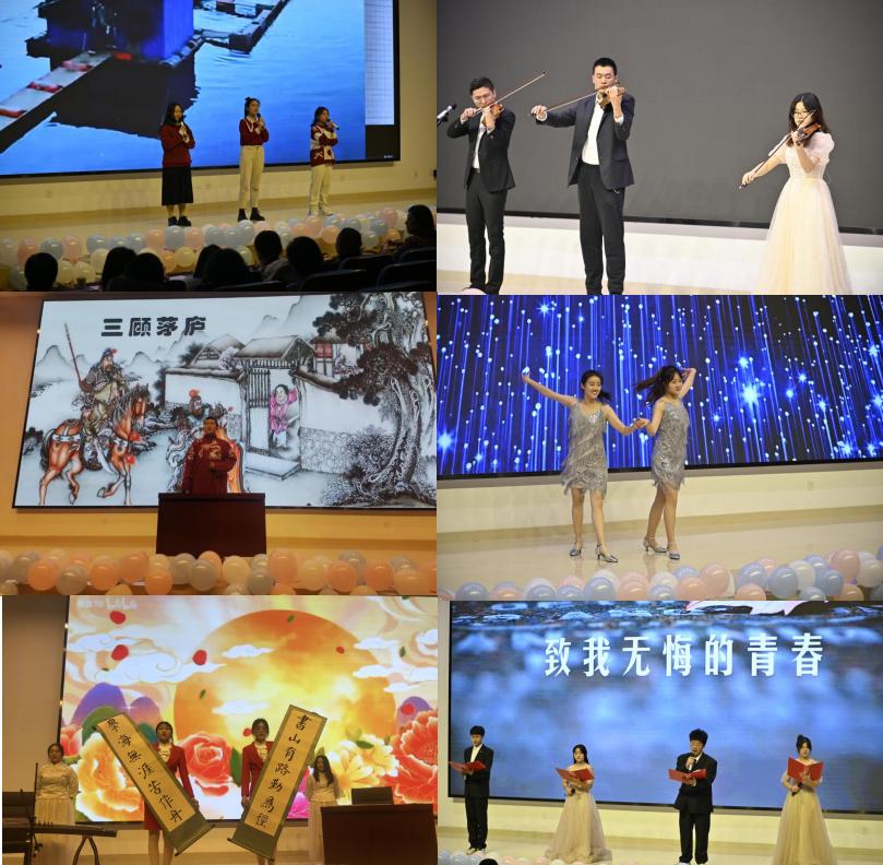 元旦联欢会内容丰富,精彩纷呈。歌曲串烧青春阳光,积极向上;器乐合奏《Viva La Vida》带来一场听觉盛宴,小提琴的悠扬,鼓声的铿锵,余音绕梁,动人心弦;评书《三顾茅庐》带来一段三国风云,情节紧凑,慷慨激昂,引人入胜;国标舞《Let’s get loud》青春激扬,五彩绮绚。古筝独奏《战台风》与书法相得益彰,用行云流水的旋律和苍劲有力的书法激励同学们“书山有路勤为径,学海无涯苦作舟”。诗朗诵《我们的青春》通过两个时代青年人的思想碰撞和对话,抒发了青年老员工的爱国之情、报国之志。