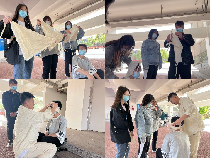 同学们在强军社工作人员的细心指导下学会了止血包扎、骨折临时固定等基本技能。