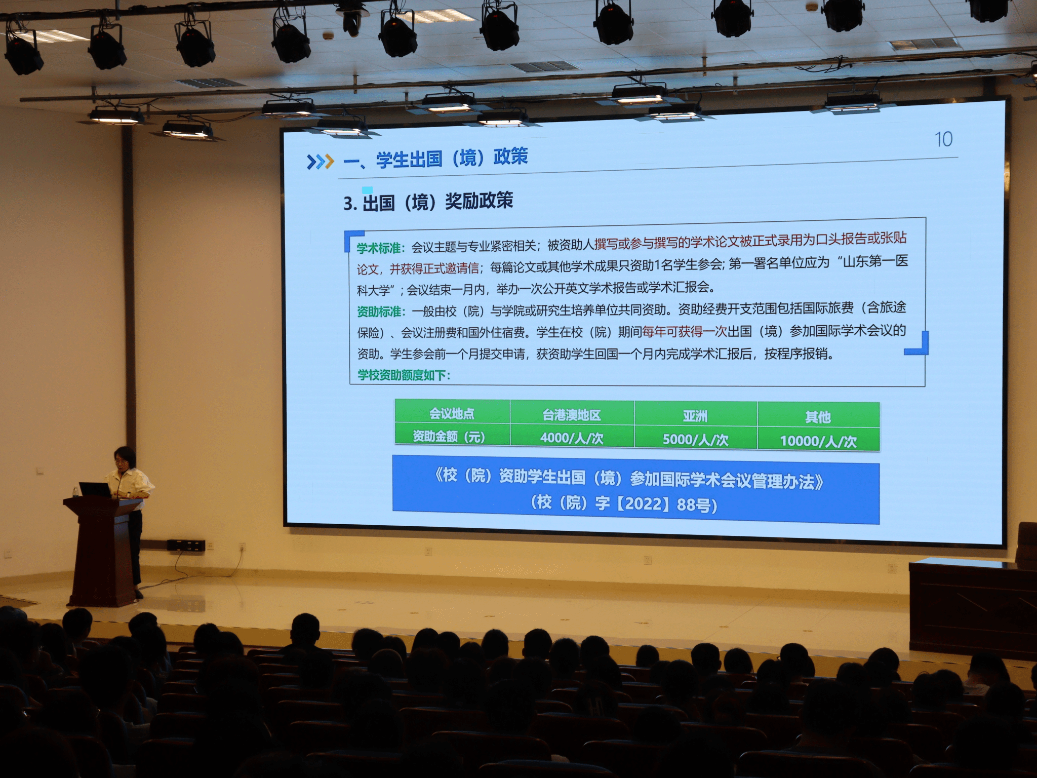 接下来,学工部刘玉老师以“学在山一大 爱筑成才梦”为题进行了员工资助政策的介绍,详细讲解了政府各类奖助学金、国家助学贷款等的申请要求及流程,并对家庭经济困难员工认定工作和服义务兵役员工资助政策进行了细致讲解。对外合作交流部王敬老师以“世界这么大 医起去看看”为题进行了出国政策解读,对出国方式、出国渠道、出国奖励等做了详细的介绍。