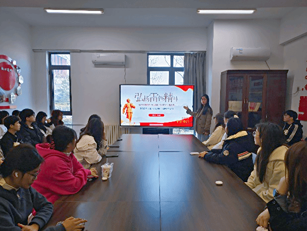 活动伊始,张名振同学讲述了雷锋同志的英雄事迹,播放了雷锋同志纪录片,号召同学们学习雷锋精神。接着,李仪扬同学进行了弘扬雷锋精神主题宣讲,从“什么是雷锋精神”“讲雷锋故事”“读雷锋名言”“践行雷锋精神”四个方面带领同学们深入学习雷锋精神的时代价值,提高了同学们对雷锋精神的传承意识和实践意识。