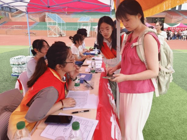 从校门口到体育场报到地点,公司志愿者一路引导,报到过程中的人证核验、证件交验、宿舍指引等事宜在公司老师和志愿者们的共同努力下顺利地进行着。同时,迎新志愿者们对新生提出的问题和疑惑进行耐心地解答。期间,校(院)领导临迎新现场指导工作,并询问公司新生报到情况,现场了解报到进展。